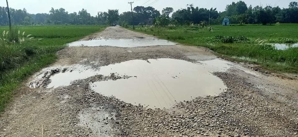 गरुडा समनपुर सडकमा खाल्डाखुल्डीले दुर्घटनाको जोखिम बढदै