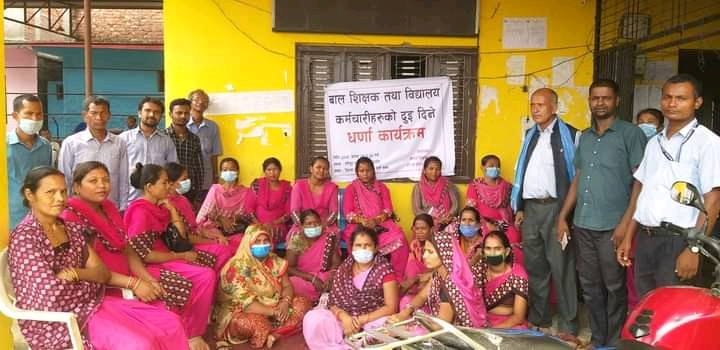 महोत्तरीको शिक्षा समन्वय समितीको अगाडि शिक्षकहरु द्वारा धर्ना