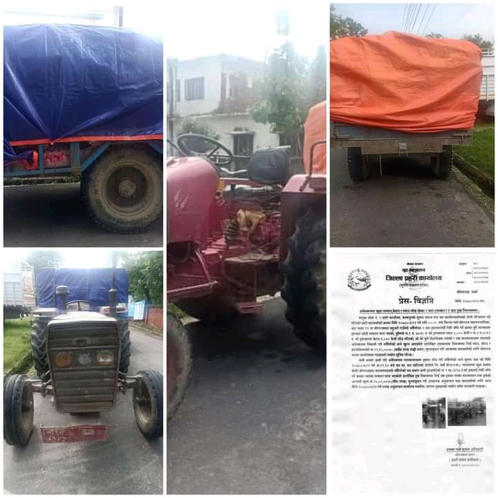 अबैधरूपमा खुद्रा सामान,केराउ र स्याउ लोड रहेका २ वटा ट्याक्टर र १ वटा ट्रक नियन्त्रणमास्