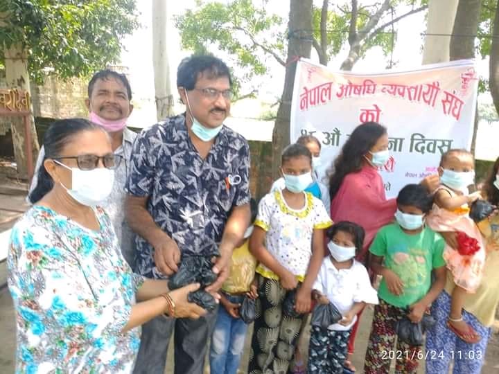 औषधि ब्यवसायी संघ ४८ स्थापना दिवस अवशरमा अनाथ आश्रम मा फलफूल बितरण।
