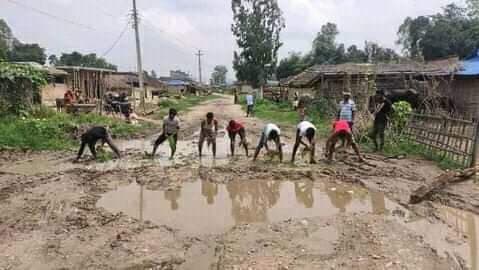 आवत जावतमा कठिनाई उत्पन्न भएपछि युवाहरु ले बाटोमै धान रोपे
