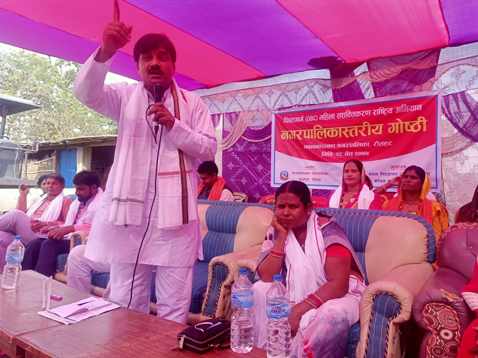 उनले महिलाहरुलाई आर्थिक,समाजिक तथा राजनीतिक रुपमा शसक्त बनाउने अभियान पहिलो पटक रौतहटको माधवनारायण नगरपालिकाबाट नै शुरु गरेको बताए ।