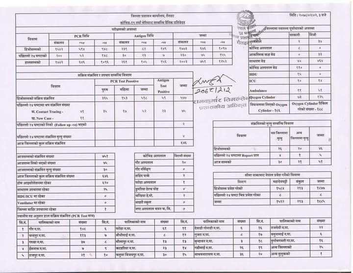 रौतहटमा आज ७५ जना कोरोना संक्रमित थपिए , मृत्यु हुने संख्या ५१ पुग्यो
