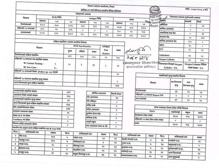रौतहटमा मंगलबार २४ जनामा कोरोना पुष्टि , ३ को मृत्यु ।