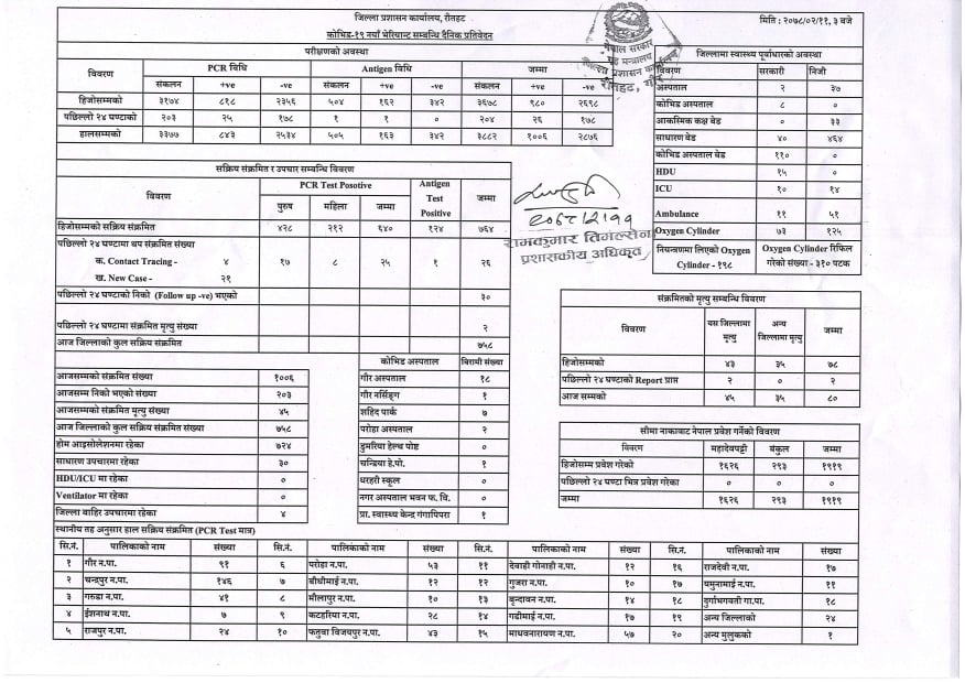 पछिल्लो २४ घण्टामा रौतहटमा २६ जनामा कोरोना पुष्टि