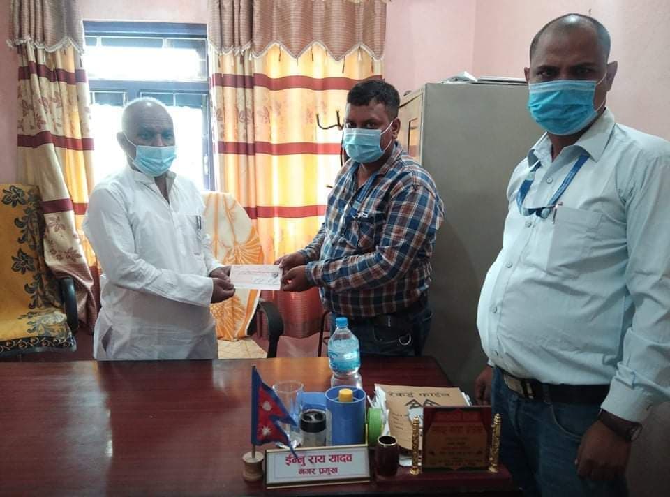रौतहटको जिल्लाको गरुडामा रहेको एक वितिय संस्थाले गरुडा नगरपालिका लाइ सहयोग गरेको छ । छिमेक लघुवित वितिय संस्था गरुडा शाखा द्धारा प्रकोप व्यवस्थापन कोषमा आर्थिक सहयोग गरिएको हो । आज मंगलवारका दिन गरुडा नगरपालिकामा नै पुगेर बैंकमा पदाधिकारीहरुले आर्थिक सहयोगको चेक हस्तान्तरण गरेका थिए । नगर प्रमुख इन्नु राय यादवकै कार्यकक्षमा गरुडा शाखाका प्रबन्धक रासनारायण महतो र छिमेकी बैंकको क्षेत्रिय अनुगमन कर्ता ज्ञानेश्वर प्रसाद सोनारले बैंकको तर्फ बाट चेक हस्तान्तरण गरेका थिए । छिमेकी बैंकले कोरोना माहामारीको दोस्रो लहर तिव्र रुपमा फैलिरहेको बेला नगर भित्रका कोरोना संक्रमितको लागि सहयोग स्वरुप १७ हजार बराबरको चेक आज हस्तान्तरण गरिएको गरुडा शाखा प्रबन्धक महतो जानकारी गराउनु भयो । सो अवसरमा छिमेकी बैंकका कर्मचारीहरु र नगरपालिका कर्मचारीहरुको उपस्थिती रहेको थियो ।