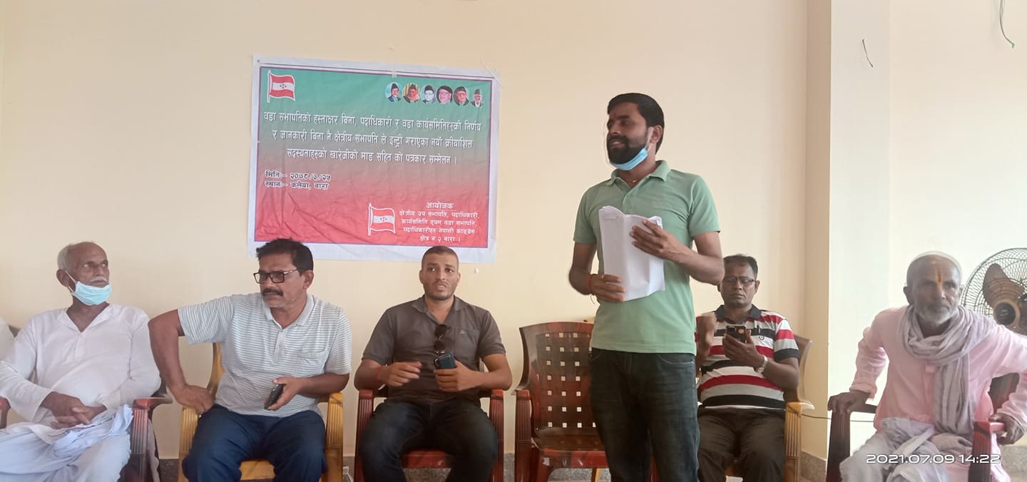 जिल्ला को क्षेत्र नम्बर २ का १३ वडाका वडा सभापतिहरुलाई बिना जानकारी क्रियाशिल सदस्यता एकैचोटी केन्द्रमा थपिएपछि सम्पुर्ण वडा सभापतिहरु विरोधमा उत्रिदै पत्रकार सम्मेलन आयोजना गरेका थियो ।क्षेत्र नम्बर २ का १८ मध्ये १३ वडा सभापतिलाई क्रियाशिल सदस्यताको फारम समेत उपलब्ध नगराई सदस्यता केन्द्रमा पठाएको भन्दै उनीहरुले बिरोध जनाएका छन् ।