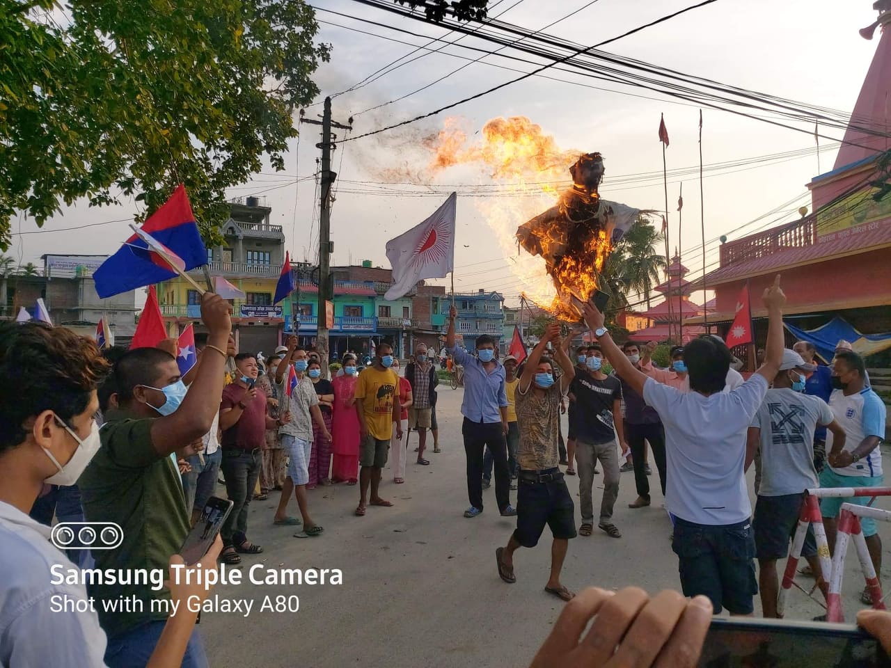 सप्तरीको विभिन्न स्थानमा नेकपा (एमाले) निकट अनेरास्ववियु र युवा संघ नेपालले आज विरोध प्रदर्शन गरेको सर्वोच्च अदालतको परमादेश विरुद्ध सप्तरीको राजविराज, सप्तकोशी, कञ्चनरुप र महुलीलगायतका स्थानमा युवा, विद्यार्थीहरूले प्रधान न्यायाधीश चोलेन्द्र शमशेर राणाको पुतला दहन गर्दै प्रदर्शन गरेका हुन् सर्वोच्च अदालतले सोमबार संसद विघटन बदर गर्दै कांग्रेस सभापति शेरबहादुर देउवालाई समय तोकेर प्रधानमन्त्रीमा नियुक्त गर्न परमादेश गर्ने फैसला गरेपछि युवा, विद्यार्थीहरूले विरोध प्रदर्शन गरेका हुन् । राजविराजस्थित उच्च अदालत जनकपुर राजविराज इजलाश अगाडि भेला भएका युवा, विद्यार्थीहरूले राणाको पुतला दहन गरे । जलेको पुतलासहित नारा लगाउँदै गजेन्द्र चोक पुगेका प्रदर्शनकारीले जनादेशको प्रधानमन्त्री हटाएर परमादेशको प्रधानमन्त्री बनाउने निर्णय मान्न नसकिने बताए । युवा संघ सप्तरीका संयोजक चितरन्जन यादव र अनेरास्ववियु सप्तरीका अध्यक्ष ललीतनारायण रजकको नेतृत्वमा राजविराजमा निक्लेको जुलुस गजेन्द्र चोकमा पुगेर कोणसभामा परिणत भएको थियो । वक्ताहरूले प्रधान न्यायाधीश राणाको दोस्रो खिलराज रेग्मी बन्ने योजनाअनुरुप सर्वोच्च अदालतको फैसला आएको दाबी गरे । विद्यमान परिस्थितिमा कांग्रेस सभापति देउवालाई प्रधानमन्त्री बनाउने परमादेश दिए पनि कालान्तरमा निर्दलीय सरकारको नेतृत्व राणाले गर्ने युवा नेता पिन्टु यादवको भनाइ छ । संसद पुनस्र्थापना गर्ने र देउवालाई प्रधानमन्त्री नियुक्त गर्ने सर्वोच्च अदालतको परमादेशको विरोध गर्दै सप्तकोशी नगरपालिकाको फत्तेपुर, कञ्चनरुप नगरपालिकाको रुपनगर र अग्नीसाइर कृष्णसवरण गाउँपालिकाको महुलीमा समेत विरोध प्रदर्शन भएको छ । प्रदर्शनकारीहरूले अदालतको फैसलाको विरोध गर्दै प्रधान न्यायाधीश राणाको पुतला दहन गरे । महुलीमा भएको कार्यक्रममा एमाले नेता बोधराज सुबेदीले सर्वोच्चले देउवालाई प्रधानमन्त्री तोके पनि संसदबाट विश्वासको मत प्राप्त गर्न सक्ने अवस्था नरहेकाले मुलुक अस्थिरतातर्फ गएको बताउनु भयो । बहुदलिय व्यवस्थामा पार्टीको आदेश मान्नु नपर्ने निर्णयले मुलुक निर्दलीय व्यवस्थातिर उन्मुख भएको उहाँले बताउनु भयो । सर्बोच्च अदालतले संविधानको व्याख्या नभई संशोधन नै गरेको भन्दै मङलबार फत्तेपुरको भकुण्डे चोकमा बिरोध कार्यक्रमका साथ प्रधान न्यायाधीश राणाको पुत्ला दहन गरिएको छ । कार्यक्रममा नेकपा (एमाले) का नगर कमिटी अध्यक्ष पारस दाहालले कांग्रेसका सभापति देउवाले संसदबाट विश्वासको मत पाउन सक्ने अवस्था नरहेको बताउनु भयो । उहाँले भन्नुभयो, ‘त्यसपछि अस्थिर राजनीतिको फाइदा उठाउँदै अपवित्र गठबन्धनको सहयोगमा प