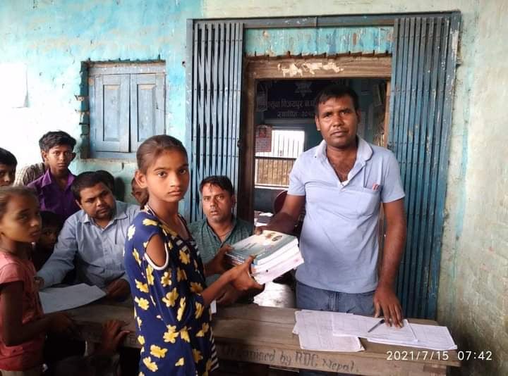 रौतहट जिल्लाको फतुवा बिजयपुर नगरपालिकाका विधायलहरुमा पुस्तक बितरण शुरु भएकोे छ । सो नगरपालिकाको वडा नम्बर ४ को एक माध्यमिक बिद्यायलका छात्रछात्राहरुलाई पाठयपुस्तक बितरण गरिएको हो । शुक्रवार एक कार्यक्रमको बिच श्री माध्यमिक बिद्यायल टेंग्राहामा अध्यनरक्त बिधार्थीहरुलाई पुस्तक उपलब्ध गराइएको हो । सो बिद्यायलका प्रधानाध्यापक अनिल यादवले छात्रछात्राहरुलाई पुस्तक हस्तान्तरण गर्नु भएको थियो । मा।वि।टेंग्राहामा करिब सात सय पँचास बिधार्थी अध्यनरक्त रहेको सो बिद्यायलको तथ्यांकमा उल्लेख रहेको छ । सो मध्ये करिब पाँच सय छात्रछात्राहरु पाठयपुस्तक बितरण गरिएको प्रधानाध्यापक यादवले जानकारी गराउनु भयो । सो बिद्यायलमा अध्यनरक्त कक्षा एक देखि कक्षा सात सम्मका बिधार्थीहरुलाई पाठयपुस्तक दिइएको र बाँकी बिद्यार्थीहरुलाई क्रमशः बितरण गर्दै जाने बिद्यायलका लेखापाल प्रमोद यादवले बताउनु भयो । पाठयपुस्तक बितरणको अवसरमा प्र।अ।यादव संगै बिद्यायलका शिक्षकहरु, कर्मचारी, अभिभावक र बिधार्थीहरुको उपस्थिती रहेको सो बिद्यायलले जनाएको हो ।
