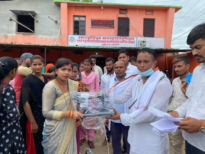 कटहरियामा नगरप्रमुख कुशवाहाले गरे सिलाई मेसिन र स्प्रे टैङकि वितरण