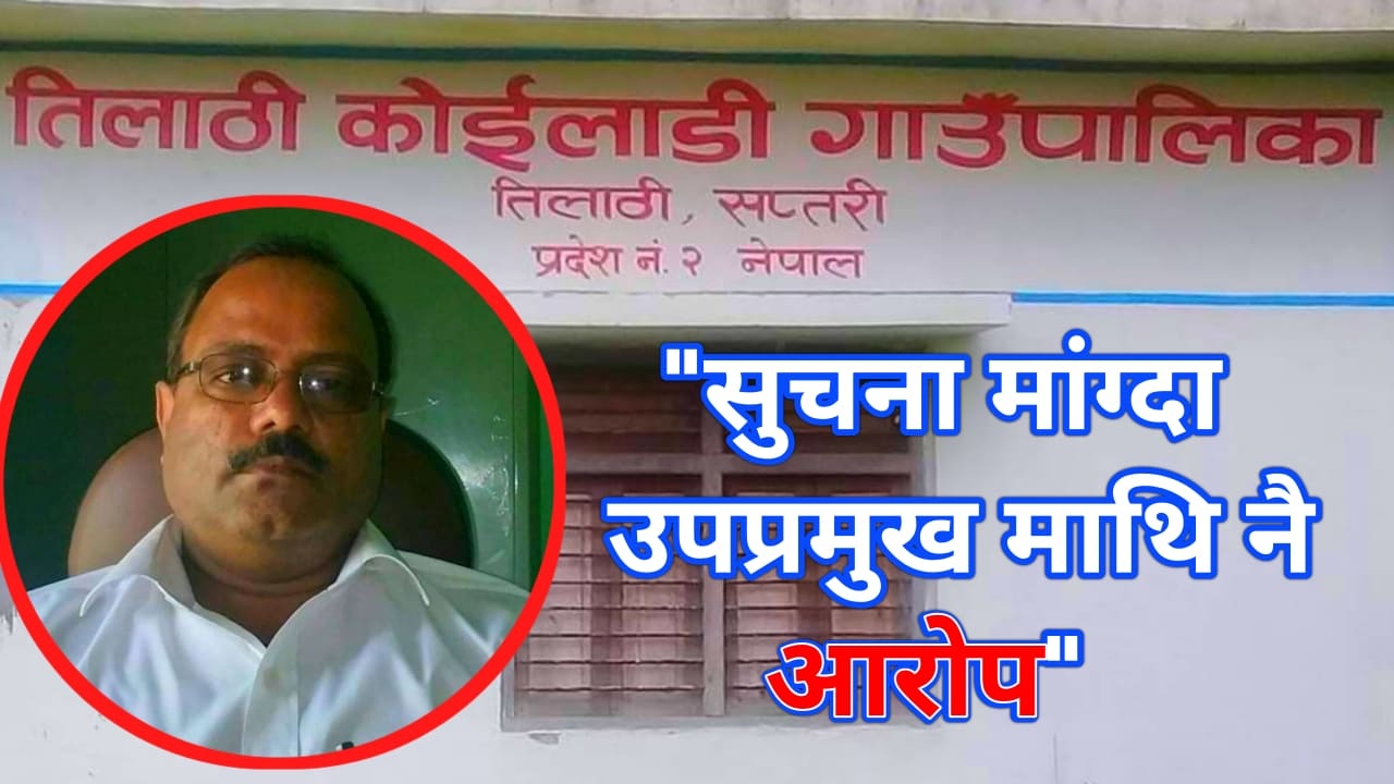 सप्तरी जिल्लाको तिलाठी कोईलाडी गाउँपालिकामा उप – प्रमुखले गाउँपालिका अधिकृत कैशब झा संग सुचना तथा बिबरण प्रमाणित प्रतिलिपि मांग गर्दा,उल्टे उप प्रमुख माथि झुठो आरोप लगाइन ्। आफ्नै पालिकामा एकजना उपाध्यक्षलाई सामान्य निर्णायहरु हेर्ननको लागि सूचनाको हक सम्बन्धि कानुन अन्तर्गत निवेदन दर्ता गराउनु पर्ने बाध्यता गराएको छ । निवेदन दर्ता गराईएपनि सूचनाका लागि दिन प्रति दिन तागेदाको तारिक जस्तै उपाध्यक्षलाई प्रयोग गर्दे आएको छ। यस्तो रबेया एक पटकको लिला हैन यो गाउँपालिकाको पटक पटकको यही लिला हो, आफ्नै मातहत समान्य कर्मचारीहरु पनि पूर्वाग्रह वस उपाध्यक्ष संगै यस्तो व्यवहार गर्दै आएको छ । अन्त्यमा उपाध्यक्षले धम्क्याएको भन्दै उल्टै विपज्ञप्तीवाजीको नौटंकी पनी समेत कर्मचारीहरुले नै गर्छन, र हाम्रा मिडियाहरु रटन्ते सुगा जस्तै तीनका विज्ञप्तीको हुवहु समाचार प्रकाशित गर्ने गर्छन् । गाउँपालिकाको उप प्रमुख सुचिता यादवले मिति २०७८÷०४÷११गते तिलाठी कोईलाडी गाउँपालिकामा निवेदन पेश गरि, अधिकृत कैशब झा संग बारम्बार सुचना मांग गर्दा आलटाल गरि आज, भोली गर्दा गर्दै बिभिन्न समसिया देखाउँदै ,आफ्नै रबेयामा बेहाल भएर निवेदन प्रति कुनै अवस्ते नगरि ,उल्टे झुठो आरोप लगाएको उप प्रमुख सुचिता यादवले बताईन् । उता केहि बर्ष आगाडी तिलाठी कोईलाडी गाउँपालिकाको निकटम प्रतियाशी उमेदवार नेपाली कांग्रेसको युवा नेता अरूण कुमार मंडलले २०७४÷२०७५ को सुचना तथा बिबरण प्रमाणित प्रतिलिपि मांग गर्न जदा, उहालाई सो गाउँपालिका को कार्यलयमा कुट पिट, हात पात समेत गरियो थियो । गाउँपालिकाको वेबसाइटमा कुनै किसिमको सुचना कहिले सर्वजानिक गरिदेन ,अधिकृत कैशब झाको चरमलपराबी रहेको स्थानी युवा , विद्यार्थीहरू बताउँछ। त्यस्तै गरि गाउँपालिका मा अधिकृतसहितका समुहले छुठो आरोप लगाउँदै,भोलि देखी हामीहरू कार्यलय समेत बन्द गरिने निर्नय गरिएको थियो ।