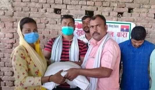 युवा संघ नेपाल कलैया उपमहानगरपालिका नगर कमिटीद्वारा बिपन्न बर्गलाई राहत स्वरुप खाद्यान्न बितरण