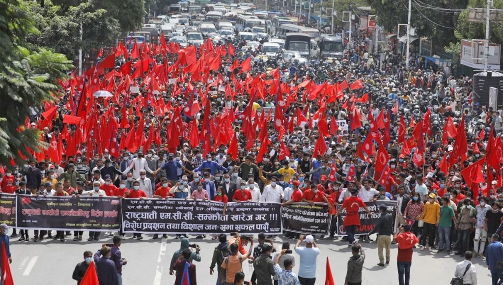 अमेरिकी सहयोग परियोजना मिलेनियम च्यालेन्ज कर्पोरेसन –(एमसीसी) सम्झौताको विरोधमा नेकपा विप्लव समूहले काठमाडौंमा प्रदर्शन गरेको छ ।