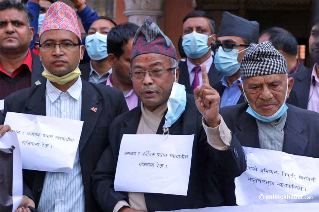 शान्तिपूर्ण प्रदर्शनमा दमन गरेको भन्दै कानून व्यवसायीहरुले प्रधानन्यायाधीश जबरा र प्रहरी प्रशासनविरुद्ध नाराबाजी गरेका छन् ।