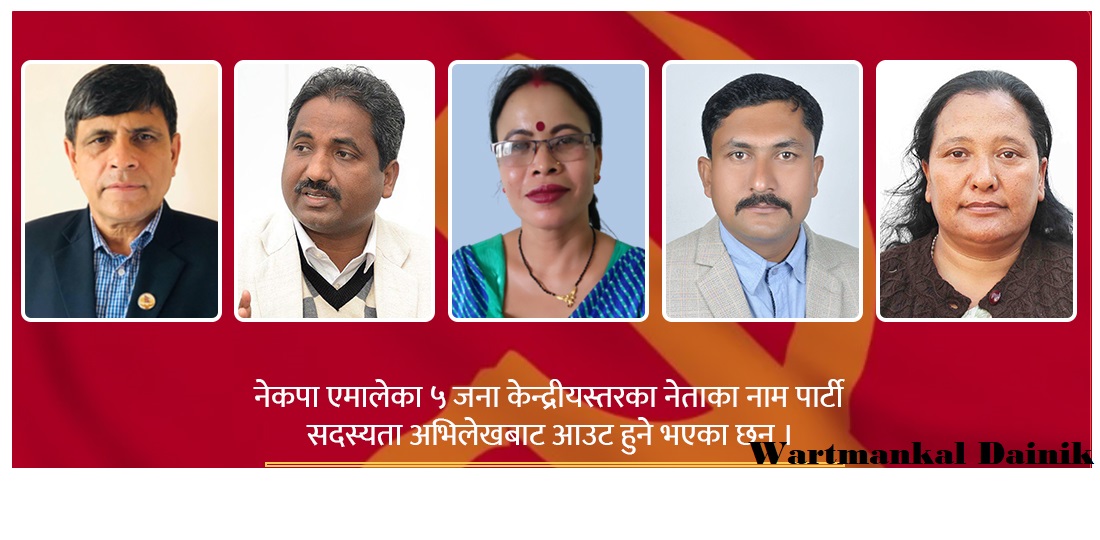 नेकपा एमालेका ५ जना केन्द्रीयस्तरका नेताका नाम पार्टी सदस्यता अभिलेखबाट आउट हुने भएका छन् । मङ्सिर ४ मा हुने प्रतिनिधि सभा र प्रदेश सभा सदस्य निर्वाचनमा पार्टीका आधिकारिक उम्मेदवारविरुद्ध बागी र स्वतन्त्रका नाममा उम्मेदवारी दिएपछि उनीहरूको नाम पार्टीको अभिलेखबाट हटाउन लागिएको हो ।