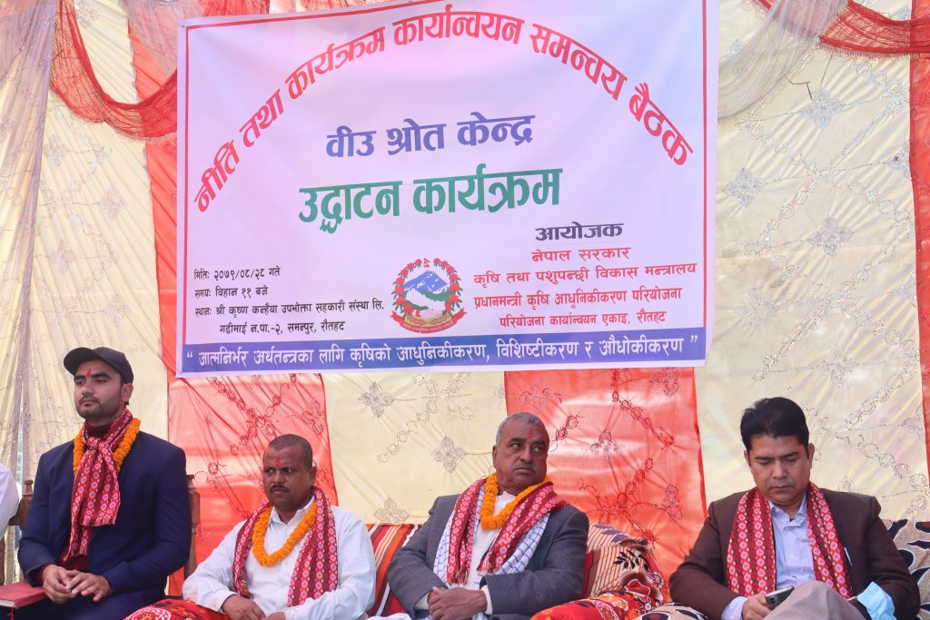 प्रधानमन्त्री कृषि आधुनिकीकरण परियोजना इकाई रौतहट बाट ५० प्रतिशत अनुदानमा श्री कृष्ण कन्हैया उपभोक्ता सहकारी संस्थाको साझेदारीमा बीउ स्रोत केन्द्रको स्थापना भएको हो ।