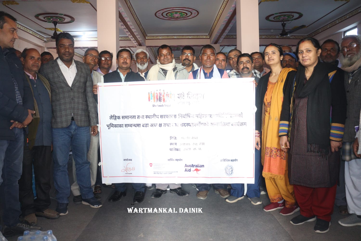 रौतहटको गरुडा नगरपालिका -४ गरूडा अवस्थित आशिर्वाद गेस्ट हाउसमा आज लैङ्गिक सामानता तथा स्थानीय सरकारमा निर्वाचित महिला जनप्रतिनिधिहरुको भुमिकाका सम्बन्धमा वडा अध्यक्ष तथा पुरुष वडा सदस्यहरुसँगको अन्तरक्रिया कार्यक्रम आज सम्पन्न भएको छ । माण्डवी रौतहटको आयोजना तथा IEFS नेपालको प्राविधिक सहयोगमा सँचालित शी लिडस परियोजना अन्तर्गत सो अन्तरक्रिया कार्यक्रम सँचालन गरिएको थियो । यो कार्यक्रम मधेश प्रदेशका ५ वटा जिल्लाहरु बारा,रौतहट,सर्लाही,महोतरी तथा धनुषा गरी २८ वटा पालिकाहरुमा सँचालित छ । स्थानीय विकासका कामहरुमा महिलाहरुको सहभागिता हुने, निर्वाचित महिला प्रतिनिधिहरूलाई उनीहरूको निर्वाचित भूमिका बढी प्रभावकारी बनाउन सहयोग हुने, राजनीतिक दलमा महिला उपस्थिति / सहभागिताका लागि सकारात्मक वातावरण सिर्जना हुने उदेश्यले अन्तरक्रिया कार्यक्रम सँचालन गरिएको थियो । सो कार्यक्रममा गरूडा नगरपालिकाका ९ जना वडा अध्यक्षहरु तथा १६ जना वडा सदस्यहरु गरी २५ जनाको सहभागिता रहेको अनुगमन तथा मुल्याँकन अधिकृत सुविन्द्र कुमार दासले जानकारी गराउनु भयो । अन्तरक्रिया कार्यक्रमले राजनीति र निर्णय प्रक्रियामा महिलाको अर्थपूर्ण सहभागिता प्रवर्द्धन गर्ने र महिला प्रतिनिधिहरलाई सामान रुपमा सहभागिता गराउने तथा राजनीतिमा महिलाहरूको अर्थपूर्ण सहभागिताका लागि प्रमुख सरोकारवालाहरूलाई संवेदनशील बनाउने तथा राजनीतिमा महिला सहभागिता सम्बन्धी विद्यमान नीति , राजनीतिमा महिलाहरूको सहभागितालाई समर्थन गर्न सरोकारवालाहरूबाट प्रतिबद्धता समेत गरिएको माण्डवीका अनुगमन अधिकृत दासले जानकारी दिनु भयो ।