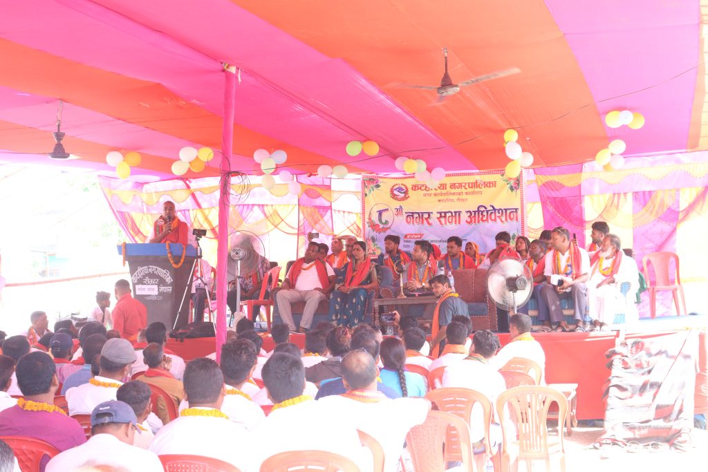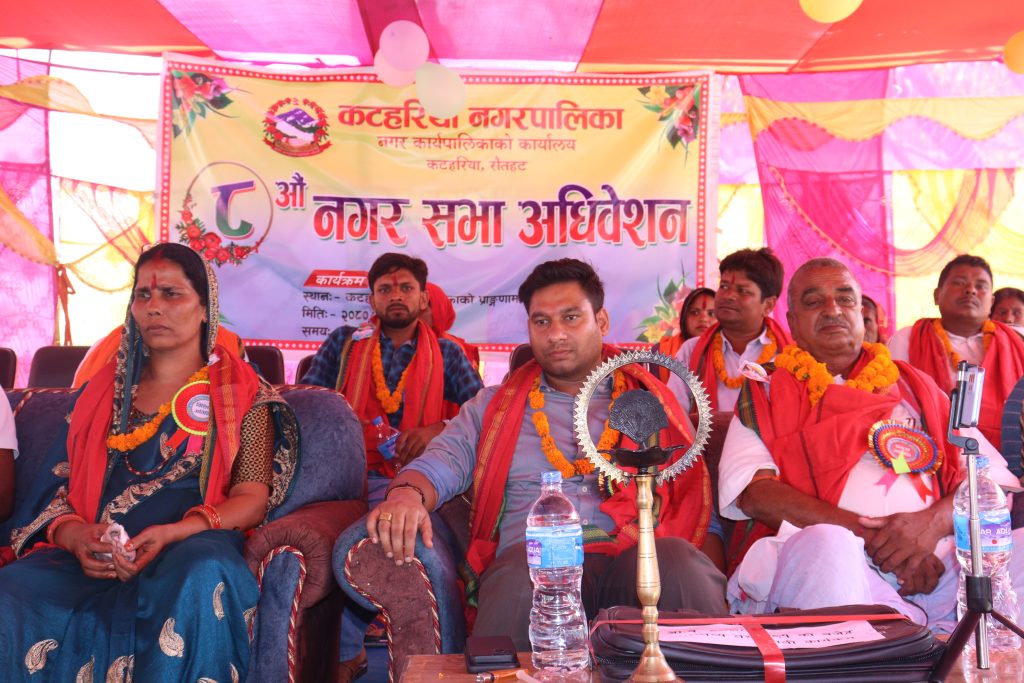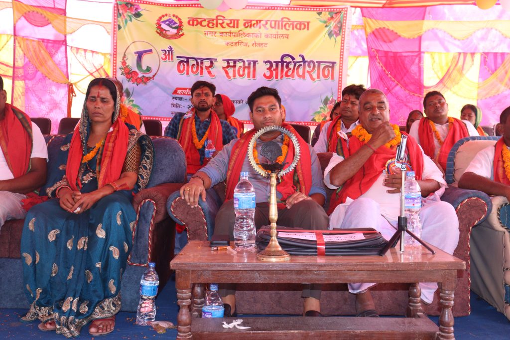 नगर प्रमुख अजय प्रकाश जैसवालको अध्यक्षतामा भएको ८ औं नगरसभा तथा नीति तथा कार्यक्रममा भने जनताहरुसँग गरेको बाँचा अहिले पनि अधुरै नै रहेको बताए । उनले भने, ‘हामीहरु जनप्रतिनिधि भएर आएको बेला देखि अहिले सिखने अवस्था छ अब बिस्तारै जनाताहरुसंग गरिएको प्रतिबद्धता पूरा गरिने बताए । भाषणमा र काममा धेरै फरक छ किन भने एकै चोटि स्मार्ट सिटि बन्दैन कटहरिया नगरपालिकाको बिकासको लागी म बसेको छैन कटहरिया नगरपालिकाको बिकासको लागि आफु लागिपरेको छु ।