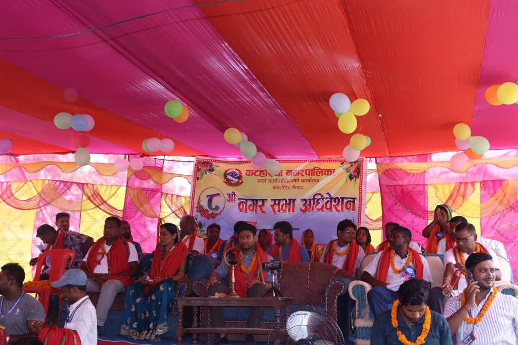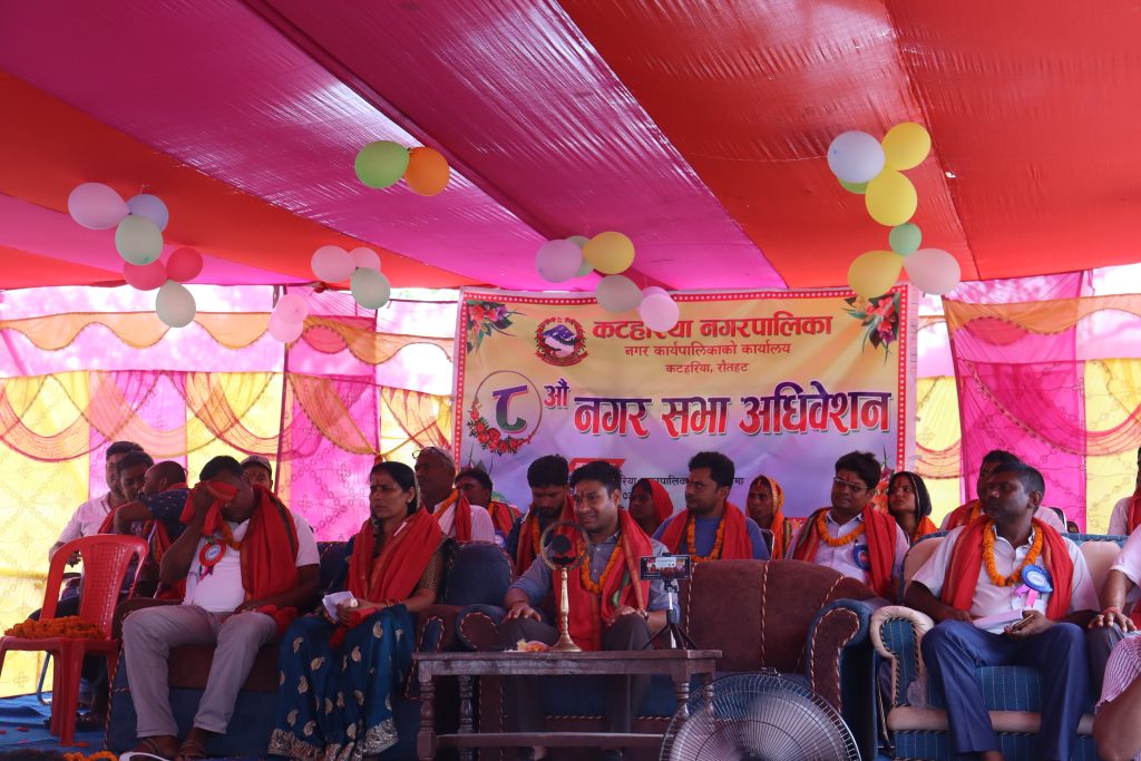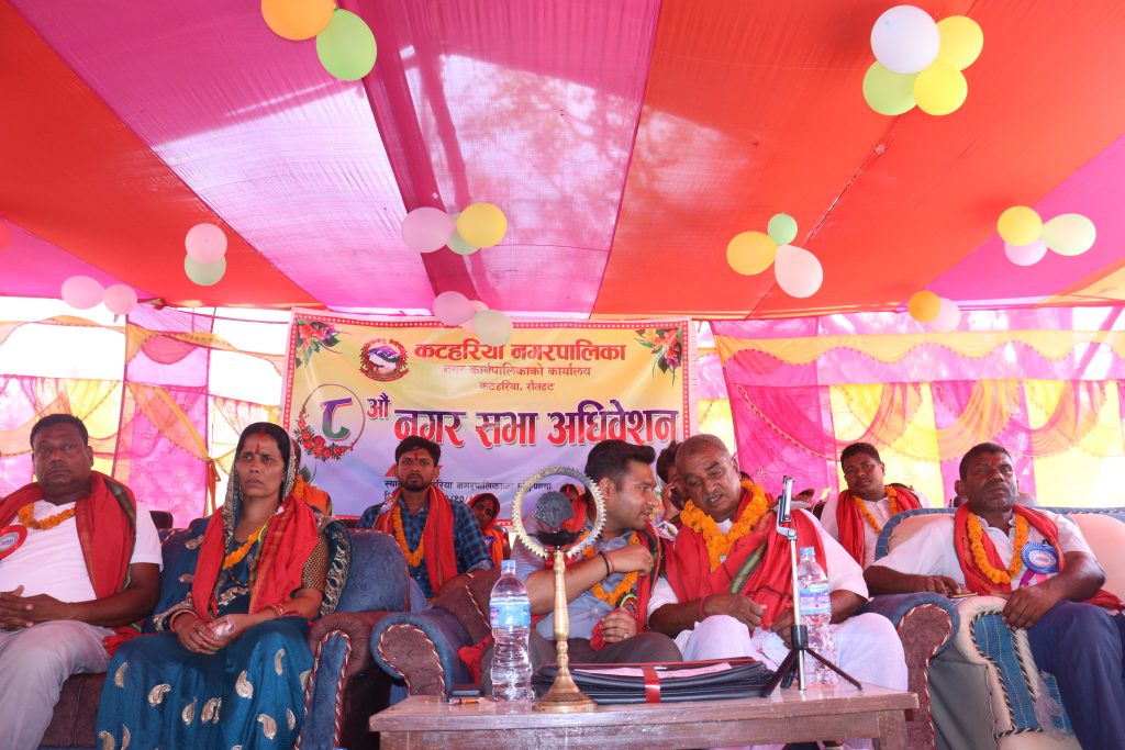 कटहरिया नगरपालिकाको प्राङ्गणमा आयोजना गरिएको ८ औं नगरसभामा नीति बजेट तथा कार्यक्रमलाई कटहरिया नगरपालिकाको नगर प्रमुख अजय प्रकाश जैसवालले बजेट प्रस्तुत गर्नु भएका थिए । नगरसभाको नीति तथा कार्यक्रमको उद्घघाटन जिल्ला बिकाश समन्यवन समितिका अध्यक्ष रामआयोध्या राय यादब र नगर प्रमुख जैसवालले पानसमा बति बालेर संयुतmरुपमा उद्वघाटन गर्नु भएको थियो ।