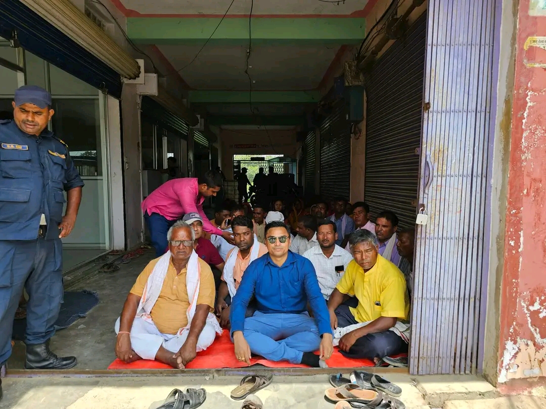 कार्यालयमा ताला लगाएर उपप्रमुखलगायत ३१ जना जनप्रतिनिधि धर्नामा बसेका छन् । उपप्रमुख चौधरीलगायत ६ वडाका अध्यक्षसहित ३१ जना जनप्रतिनिधि धर्नामा बसेका हुन् । कार्यालयमा तालाबन्दीपछि उनीहरू मुख्य गेटमै धर्नामा बसेका हुन् ।
