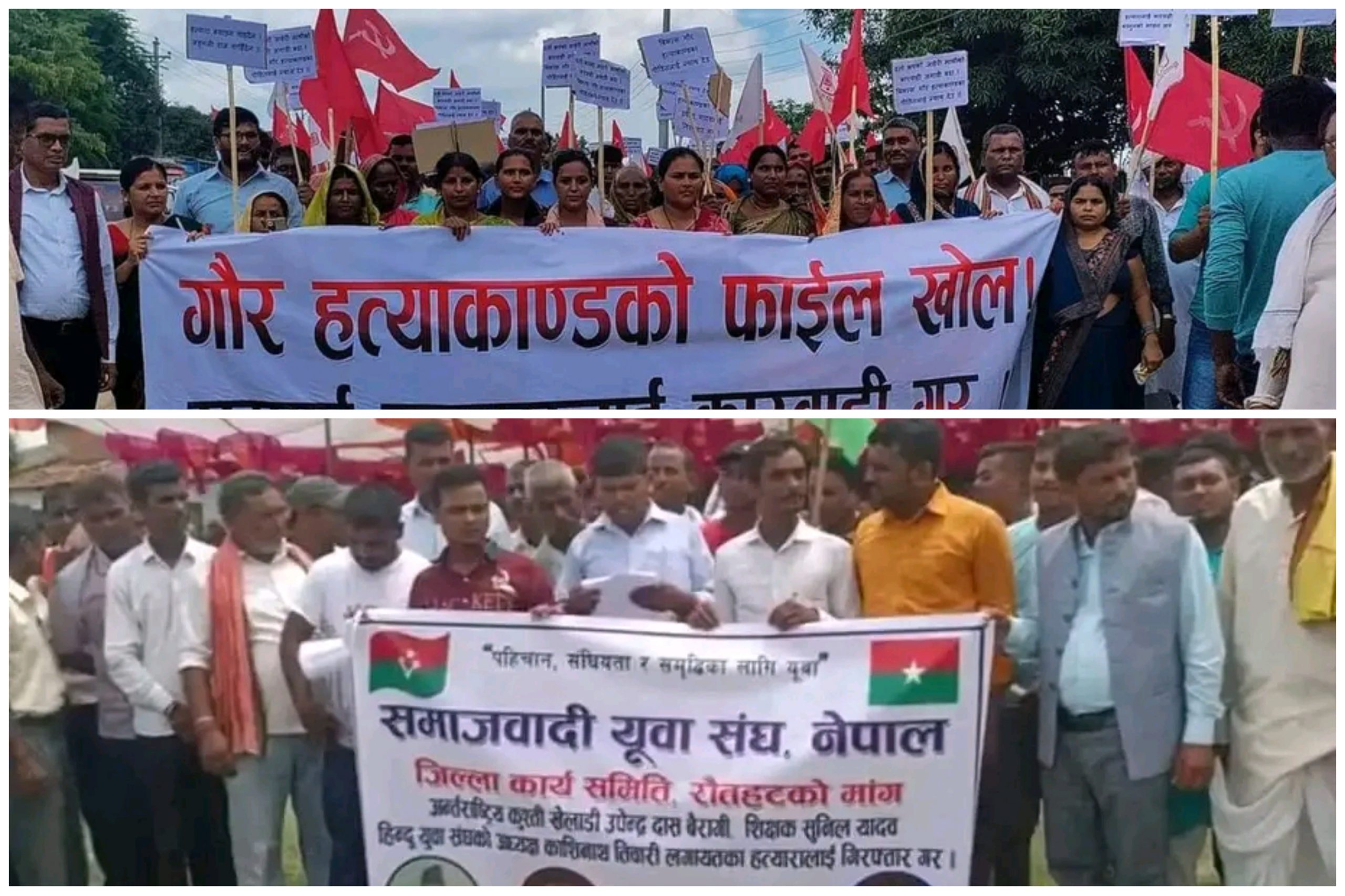 गौर हत्याकाण्ड पीडित संघर्ष समितिको नाममा भएको प्रदर्शनको नेतृत्व आम जनता पार्टीका अध्यक्ष प्रभु साहले गरिरहेका छन् । आइतबार संघर्ष समितिले गौरमा मोटरसाइकल र्यालीसहितको प्रदर्शन गरेको छ । सोमबारदेखि रौतहट बन्दको घोषणा गरिएको छ । ‘हामीले घटनापछि दिएको जाहेरी अनुसार जबसम्म दोषीहरूलाई पक्राउ गरी कारबाही हुँदैन, तबसम्म हाम्रो आन्दोलन जारी रहन्छ’, संघर्ष समितिकी संयोजक रूपसागर देवीले भनिन् ।