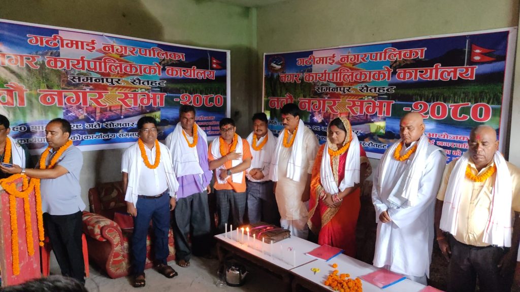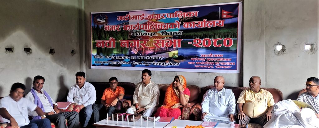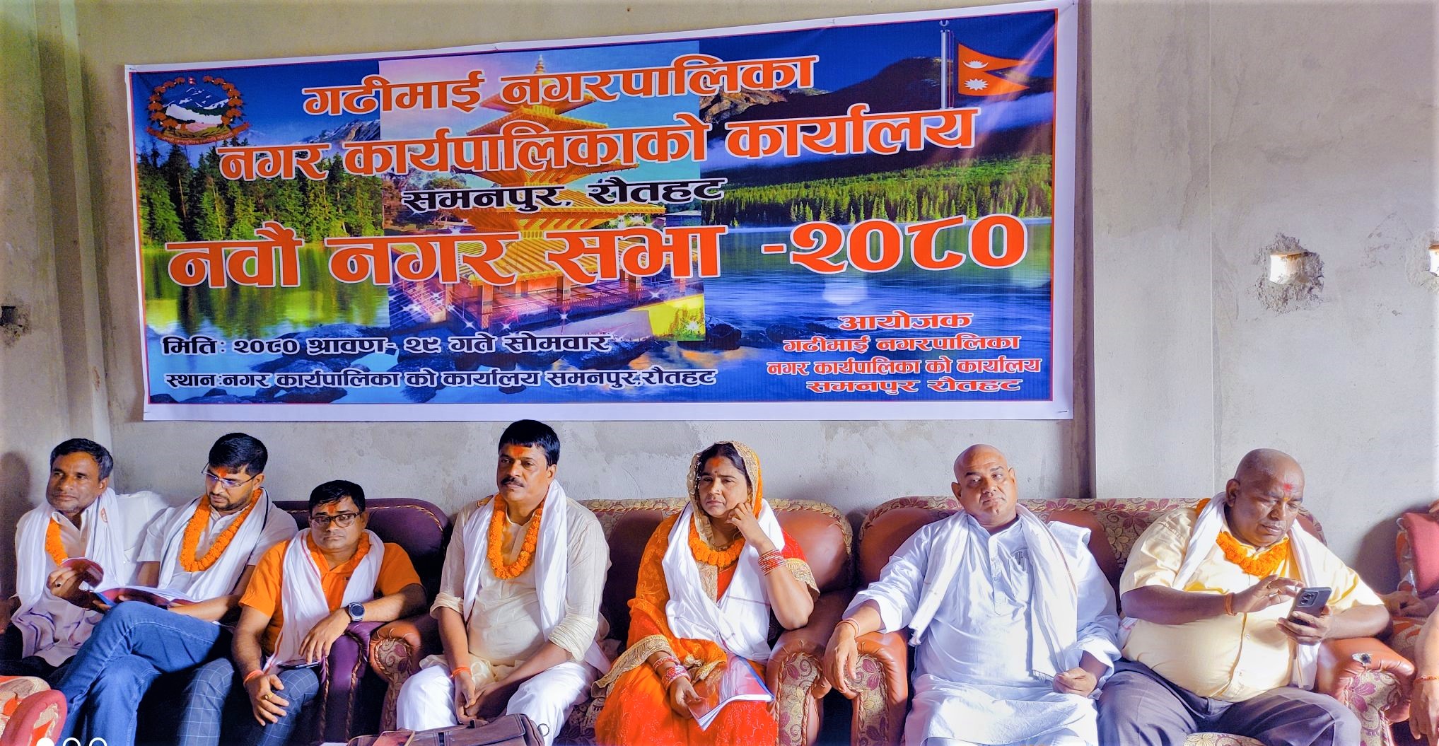 रौतहट, २९ साउन । रौतहट जिल्लाको गढीमाई नगरपालिकाको नवौं नगर सभा तथा दोस्रो कार्यकालको दोस्रो नगरसभा सोमबार सभ्य एवं भब्य रुपमा सम्पन भएको छ । गढीमाई नगर स्वच्छ सफा र समृद्ध शहर ” भन्ने मुल नाराका साथ नगर कार्यपालिकाको सभा हलमा नगर प्रमुख श्याम प्रसाद यादवको अध्यक्षतामा नवौं नगर सभा कार्यक्रम सम्पन्न भएको हो ।