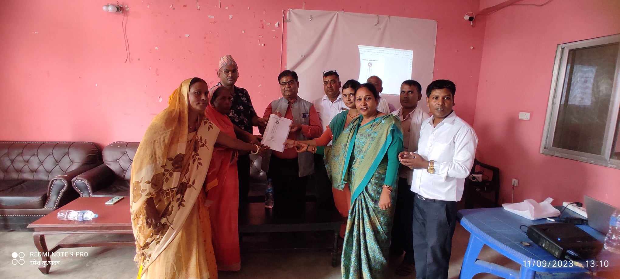 अध्यक्ष हुसेनले भने बालबालिको संरक्षण ,बालबालिकाको प्रबर्धनका लागी सरोकारबाला ,बालमैत्री नगर वडा घोषणा गराउने ,बस्तु स्थिती ,शिक्षामा बालबालिकाको अवस्था,उनीहरुको स्वास्थ्य अवस्था कस्तो छ भने बुझने र त्यसलाई सुधारमा ल्याउने उदेश्य सहित नगर प्रमुखलाई बालबालिकाको बस्तु स्तिथी बिवरण २०८० को अन्तिम मस्यौदा नगर प्रमुख जैसवाललाई एक कार्यक्रम बुझाएको बताउनु भयो । उक्त कार्यक्रममा नगर पालिकाको नगर कार्यपालिकाको सदस्य ,बिभिन्न वार्डका वडाअध्यक्षहरु ,नगरपालिकको नियमित प्रमुख प्रशासकिय अधिकृत हेमराज फुयाँल ,आरडिसि कार्यक्रमको संयोजक श्रीलाल सरदार ,बिकास थापा ,बिभा पाण्डे लगायत संचारकर्मिहरुको सहभागिता रहेको थियो ।