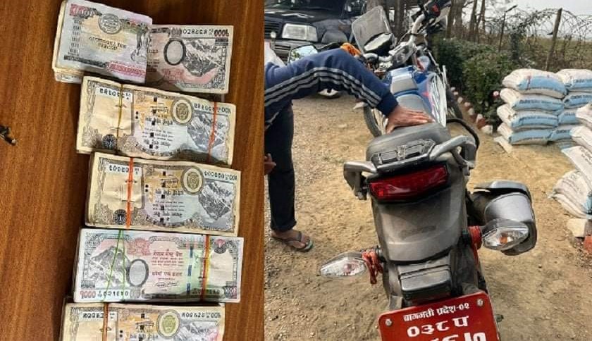 जिल्लाको बौधीमाई नगरपालिका–७ छोटी बंकुल हुँदै भारततर्फ गइरहेको बागमती प्रदेश ०२–०३८ प–५८६७ नम्बरको मोटरसाइकल चेकजाँच गर्दा एक हजार दरको ३४२ र पाँच सय दरका ५०४ थान गरी कुल ५ लाख ९४ हजार रुपैयाँ बरामद भएको सशस्त्र प्रहरी निरीक्षक पाटामगरले बताए । बरामद रुपैयाँ, मोटरसाइकलसहित ४५ वर्षीय कुशवाहालाई आवश्यक कारबाहीका लागि जिल्ला भन्सार कार्यालय गौरमा बुझाइएको सशस्त्र प्रहरीले जनाएको छ ।