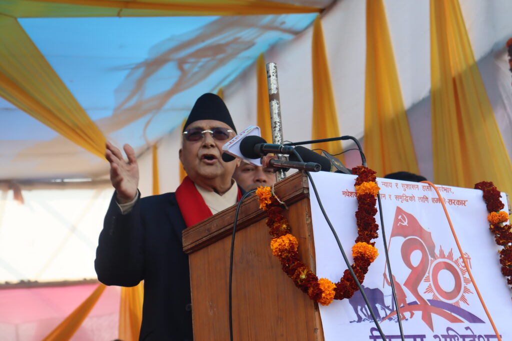 एकीकृत समाजवादीका अध्यक्ष माधवकुमार नेपाल राजनीतिमा आउनुभन्दा पहिला आफू रौतहट आएर राजनीति सुरु गरेको बताउँदै ओलीले माधव नेपालकै कारण रौतहटमा विकास हुन नसकेको आरोप लगाए।