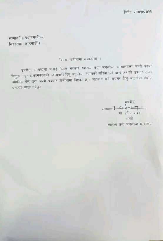 यस्तै सरकारमा रहेका जसपाका मन्त्रीहरूले राजीनामा पनि दिएका छन् । माओवादी केन्द्रका अध्यक्ष प्रचण्ड नेतृत्वको सरकारमा जसपाका दुई जना मन्त्री र एक जना राज्यमन्त्री छन् ।