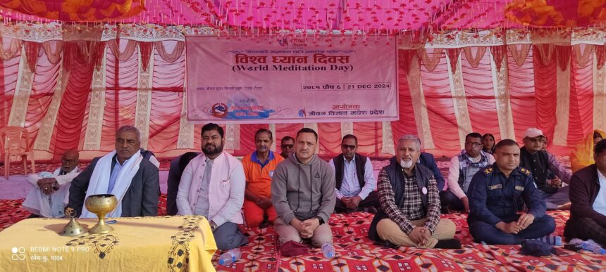 संयुक्त राष्टूसङ्घको घोषणा अनुसार शनिबार पहिलो पटक ‘विश्व ध्यान दिवस’ नेपाल सहित विश्वभर मनाइएको छ । नेपालमा पनि विश्वव्यापी सद्भावका लागि आन्तरिक शान्ति भन्ने मूल नाराका साथ विभिन्न स्थानमा ध्यान तथा योग कार्यक्रमको आयोजना गरी दिवस मनाइएको छ । रौतहट जिल्लाको गरुडा नगरपालिकाको सहयोगमा ‘विश्व ध्यान दिवस’को विशेष कार्यक्रम आयोजना गरिएको थियो । गरुडा नगरपालिकाको वार्ड नं. ४ मा रहेको श्रीराम सुगर मिलको प्राङ्गणमा जिल्ला समन्वय समितिका सभापति राम अयोध्या यादवको प्रमुख आतिथ्यमा दीप प्रज्वलन गर्दै दिवसको औपचारिक उद्घाटन गरिएको थियो ।