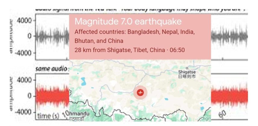 मंगलबार बिहान ६ः५० बजे नेपालमा ठूलो भूकम्पको धक्का महसुस गरिएको छ। राष्टिूय भूकम्प मापन तथा अनुसन्धान केन्द्रका अनुसार भूकम्पको केन्द्रबिन्दु नेपाल(चीन सीमा क्षेत्र रहेको र यसको परिमाण ७ म्याग्निच्यूड मापन गरिएको छ। भूकम्पले नेपालका विभिन्न भाग, विशेष गरी मधेश प्रदेश, रौतहट लगायतका क्षेत्रमा ठूलो प्रभाव पारेको छ। भूकम्पको धक्का बिहान सुतिरहेको समयमा महसुस गरिएको हुँदा सर्वसाधारण त्रसित भएर घरबाहिर दौडेर निस्किएका थिए। रौतहट र आसपासका क्षेत्रमा भूकम्पको झट्का लामो समयसम्म महसुस गरिएकोले मानिसहरु ठूलो डरले सडकमा भेला भएका थिए।