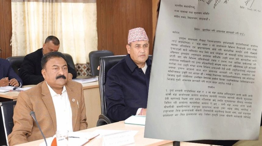 महतोले समितिमा दिएको उजुरी बिहीबारको समितिको बैठकमा उपस्थित सांसदहरूलाई वितरण गरिएको छ । गाउँपालिका कार्यालय र वडा नम्बर ३ को कार्यालयले विभिन्न गैरकानुनी कार्य गरेको, व्यापक अनियमितता एवं भ्रष्टाचारजन्य कार्य गरी सार्वजनिक सम्पत्ति हानिनोक्सानी गरेको महतोले दिएको उजुरीमा उल्लेख छ । पालिकामा भइरहेको आर्थिक अनियमितता र भ्रष्टाचाका बारेमा अख्तियार दुरुपयोग अनुसन्धान आयोगमा उजुरी दिइएको भए पनि अहिलसम्म कुनै कारबाही नभएको उजुरीमा उल्लेख छ ।