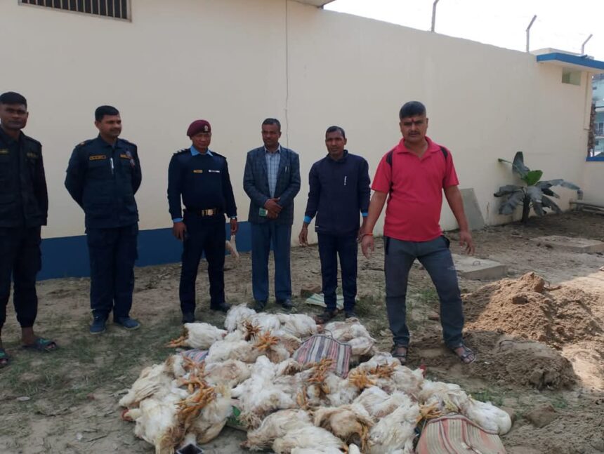 रौतहटको परोहा नगरपालिकामा अवैध रूपमा ल्याइएका बेवारिसे ब्रोइलर कुखुराका चल्लाहरू नष्ट गरिएको छ । सोमबार प्रहरी चौकी मोतिपुर नरकटियाबाट खटिएको गस्ती टोलीले नियमित गस्ती गर्ने क्रममा परोहा नगरपालिका(७ को सीमाक्षेत्रमा भारतबाट नेपाल भित्र्याउन खोजिएको प्रतिबन्धित ब्रोइलर कुखुराका १ हजार ४ सय चल्लाहरू बेवारिसे अवस्थामा फेला पारेको थियो । गस्ती टोलीले ती कुखुराका चल्लाहरू तुरुन्तै नियन्त्रणमा लिएको थियो ।