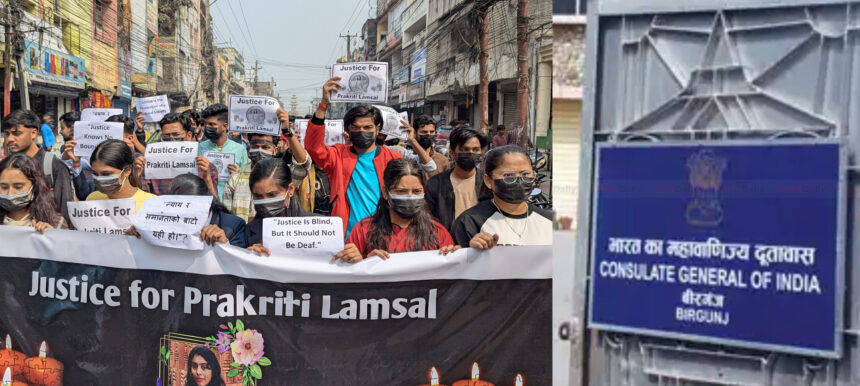भारतको ओडिशा राज्यको राजधानी भुवनेश्वरस्थित कलिंग इन्स्टिच्युट अफ इन्डस्ट्रियल टेक्नोलोजी (किट) विश्वविद्यालयमा रहस्यमय परिस्थितिमा मृत भेटिएकी नेपाली विद्यार्थी प्रकृति लम्सालको न्यायका लागि वीरगञ्जमा भइरहेको विरोध प्रदर्शन भारतीय महावाणिज्य दूतावासका लागि चुनौतीको विषय बनेको छ । प्रकृति लम्साल र नेपाली विद्यार्थीहरूको न्यायका लागि