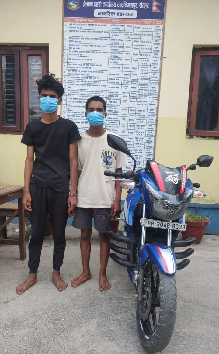 गत बैशाष ३ गते बुधबारका दिन ईलाका प्रहरी कार्यालय डुमरियाबाट खटिएको प्रहरी गस्ती टोलीले रौतहट चन्द्रपुर नगरपालिकाको वडा नम्बर १० बालचनपुरचोक नजिक पश्चिम किनारमा २ जना पुरूष व्यक्ति निलो रंगको अपाचे मोटरसाईकल सहित शंकास्पद अवस्थामा बसेको स्थानमा पुगी नाम थर, ठेगाना सोधपुछ गरेको थियो ।
