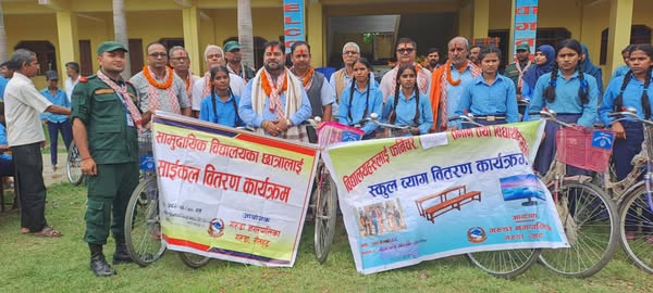 साथै विद्यालयका लागि १५० वटा निःशुल्क झोला पनि वितरण गरिएको छ ।नगरप्रमुख जैसवालले चालु आर्थिक वर्षको नगर बजेटबाट साइकल वितरण कार्यक्रम सञ्चालन गरिएको बताउँदै, नगरका सबै सामुदायिक विद्यालयमा अध्ययनरत गरिब तथा दलित समुदायका छात्राहरुलाई क्रमशः साइकल वितरण गरिने जानकारी दिए ।
