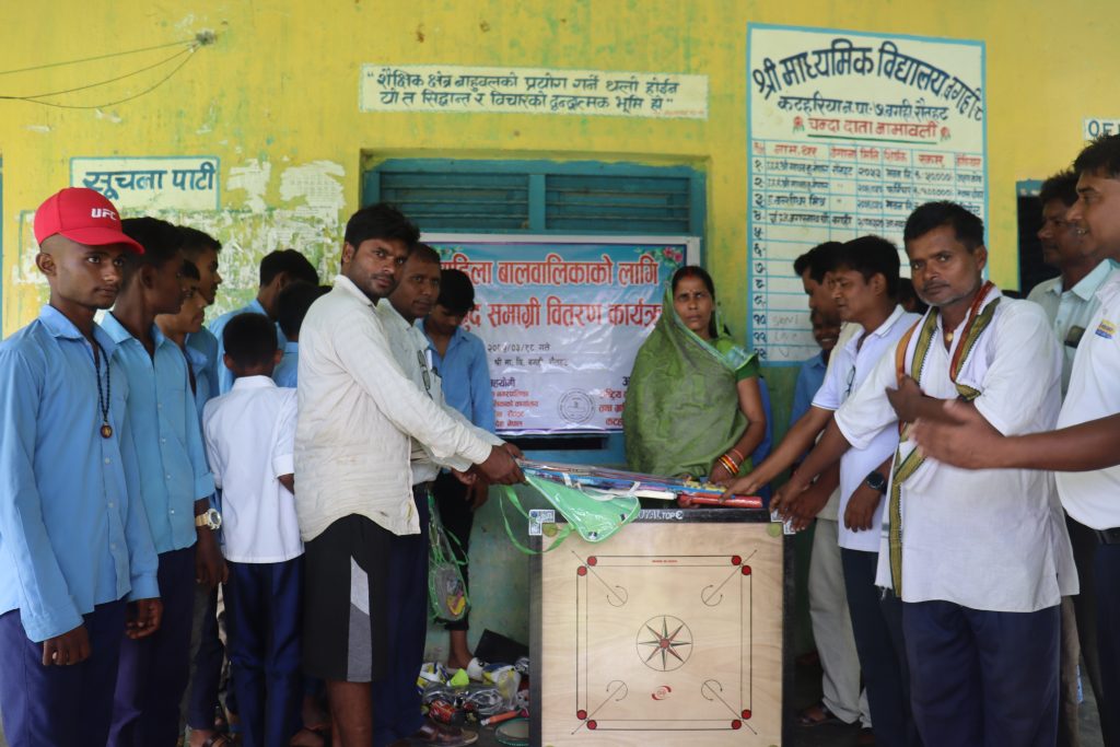 यी सामग्रीहरू हरेक विद्यालयमा विद्यार्थीहरूको शारीरिक सक्षमता, मानसिक विकास र आपसी सहयोग भावना अभिवृद्धि गराउने लक्ष्यका साथ वितरण गरिएको हो ।