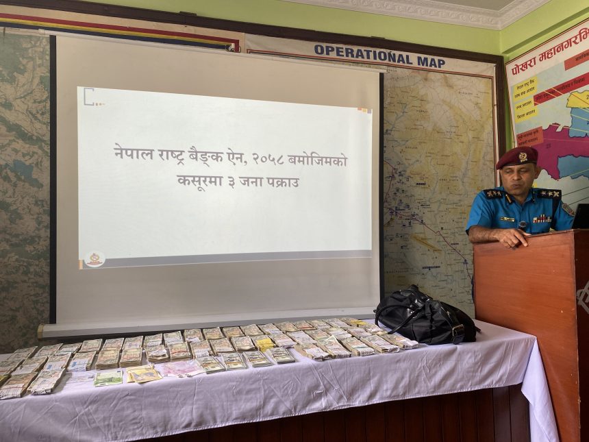 पोखरा,११ श्रावण। झण्डै ७६ लाख नगदसहित पोखराबाट ३ जना हुण्डी कारोबारी पक्राउ परेका छन् । उनीहरूको साथबाट ७५ लाख ९६ हजार रुपैयाँ बराबरको नेपाली तथा विदेशी मुद्रा बरामद गरेको कास्की प्रहरीले आइतबार पत्रकार सम्मेलन गरेर जानकारी दियो ।