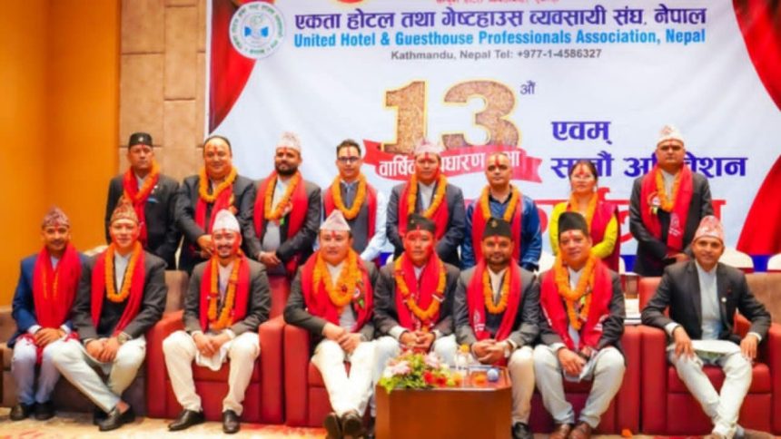 काठमाडौंं, १८ श्रावण। एकता होटल तथा गेष्टहाउस व्यवसायी संघ , नेपालको तेह्रौ साधारणसभा तथा सातौँ अधिबेशन सम्पन्न भएको छ। सघंका अध्यक्ष सरोज आलेको सभापतित्व र नेपाल सरकार सँस्कृति, पर्यटन तथा नागरिक उड्डयन मन्त्री माननीय बद्री प्रसाद पाण्डेको प्रमुख आतिथ्यता मा गौशला स्थित पिङ्गलास्थान मा अबस्थित होटल कृष्टल पशुपतिमा सभ्य र भब्य रुपमा सम्पन्न भएको छ।