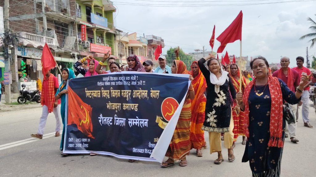 रौतहट, २२ श्रावण। रौतहटमा मिटरब्याजविरुद्ध किसान मजदुर आन्दोलन, नेपाल अन्तर्गत भोजपुरा कमाण्डको रौतहट जिल्ला सम्मेलन सम्पन्न भएको छ। गरुडा नगरपालिका-५ मा आयोजित सम्मेलनमा जिल्लाभरिका किसान, मजदुर तथा सामाजिक कार्यकर्ताहरूको उल्लेखनीय उपस्थिति रहेको थियो।