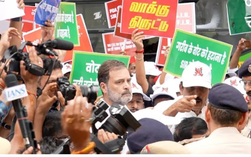 गान्धीले हिरासत जाँदै गर्दा संविधान बचाउन आफूहरु सडकमा आएको प्रतिक्रिया दिएका छन् । उनले यसलाई एक व्यक्ति एक मतको लडाइ भन्दै मतदाता नामावलीमै सत्तापक्षले धाँधली गरेको आ।रोप लगाएका छन् । मार्चपासमा प्रियंका गान्धीसहित समाजवादी नेतृ डिम्पल यादव,महुजा मोइत्रा, संजय राउतलगायत थिए ।