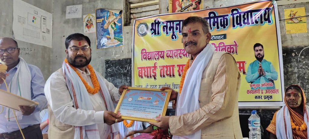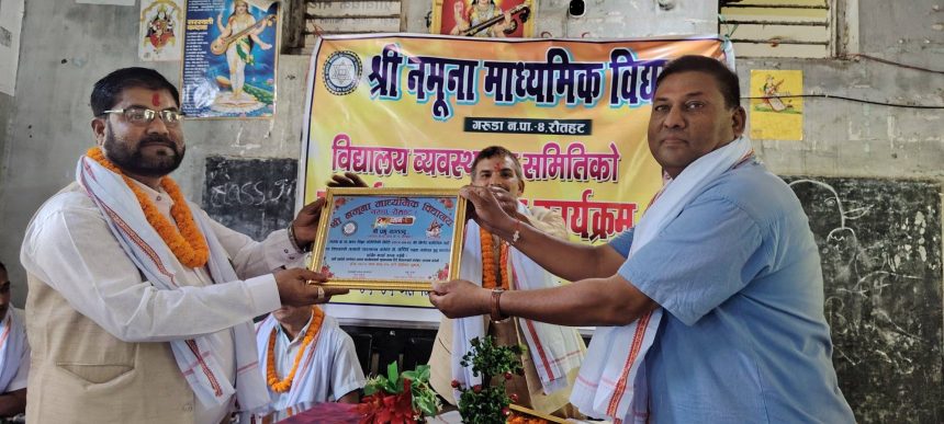 रौतहट, ०५ भदौ। रौतहटको गरुडा नगरपालिका–४ स्थित श्री नमुना माध्यमिक विद्यालयमा हालै गठन भएको विद्यालय व्यवस्थापन समितिलाई बधाई तथा सम्मान कार्यक्रम सम्पन्न भएको छ।