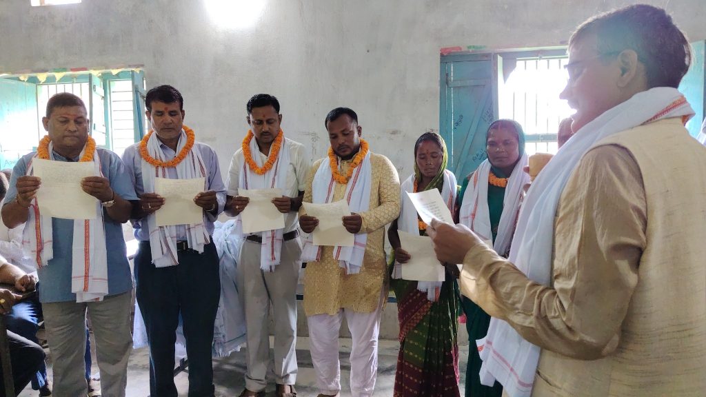 शपथ ग्रहण पछि समितिका पदाधिकारीहरुलाई फूलमाला, अबिर र दोसल्ला लगाएर सम्मान गरिएको थियो।