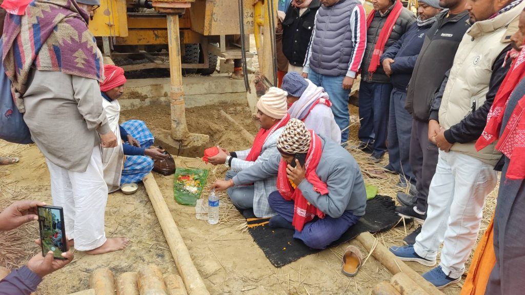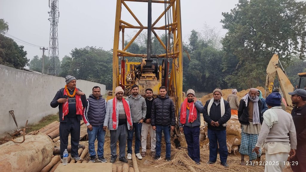 रौतहट जिल्लाको बृन्दावन नगरपालिका–८ आकडपाथडमा निर्माणको अन्तिम चरणमा रहेको शुद्ध खानेपानी ओभरहेड ट्यांकीका लागि डिप बोरिङ्गको शिलान्यास गरिएको छ । मंगलबार एक औपचारिक कार्यक्रमबीच नगर प्रमुख बिनोद प्रसाद कुर्मीले पुजाआजा तथा पुरोहितद्वारा मन्त्रवाचन गराएर डिप बोरिङ्गको शिलान्यास गर्नुभएको हो । उक्त शिलान्यास कार्यक्रममा बृन्दावन नगरपालिका–८ का वडाअध्यक्ष रबिन्द्र प्रसाद साह, वडा नं. ९ का वडाअध्यक्ष प्रवेज आलमलगायत जनप्रतिनिधिहरूको उपस्थितिमा संयुक्त रूपमा शिलान्यास गरिएको हो । यस आयोजना सम्पन्न भएपछि बृन्दावन नगरपालिकाका वडा नं. ८ र ९ का करिब सात हजार उपभोक्ता प्रत्यक्ष रूपमा लाभान्वित हुनेछन् । कार्यक्रमलाई सम्बोधन गर्दै नगर प्रमुख कुर्मीले जनताको आधारभूत आवश्यकतालाई उच्च प्राथमिकतामा राख्दै शुद्ध खानेपानीको पहुँच विस्तार गर्ने उद्देश्यले यो आयोजना अघि बढाइएको जानकारी दिनुभयो ।