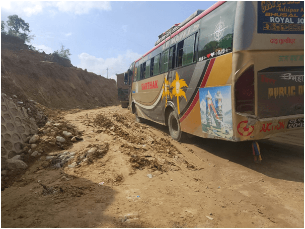 दाउन्नेस्थित खुर्सानी खोला आसपासको सडकमा सवारी साधन चिप्लिने र उकालो चढ्न नसक्ने समस्या देखिएपछि सोमबार बिहानदेखि यो खण्ड अस्तव्यस्त बनेको जिल्ला प्रहरी कार्यालय नवलपरासी (बर्दघाट सुस्तापूर्व)का प्रहरी उपरीक्षक युवराज खड्काले बताए ।