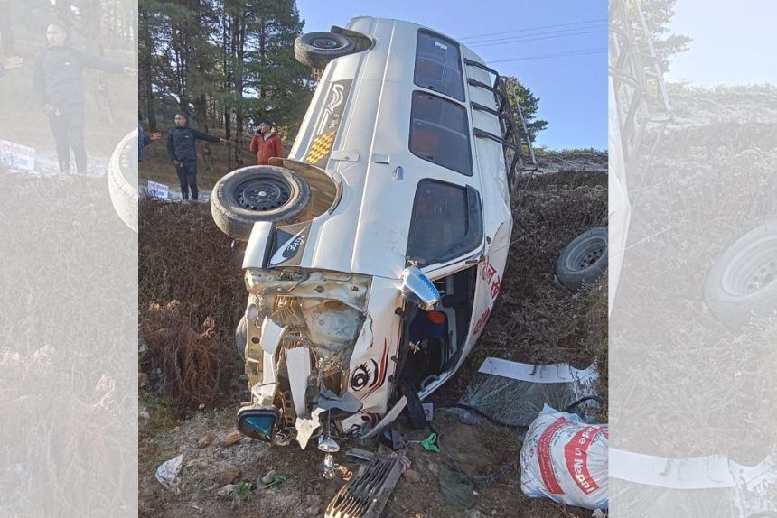 लामोसाँघु–जिरी सडक खण्ड अन्तर्गत भिमेश्वर–९ आहालडाँडामा बागमती प्रदेश ०६–००१ ज ०२८८ नं. को ईभी भ्यान दुर्घटना भएको हो ।