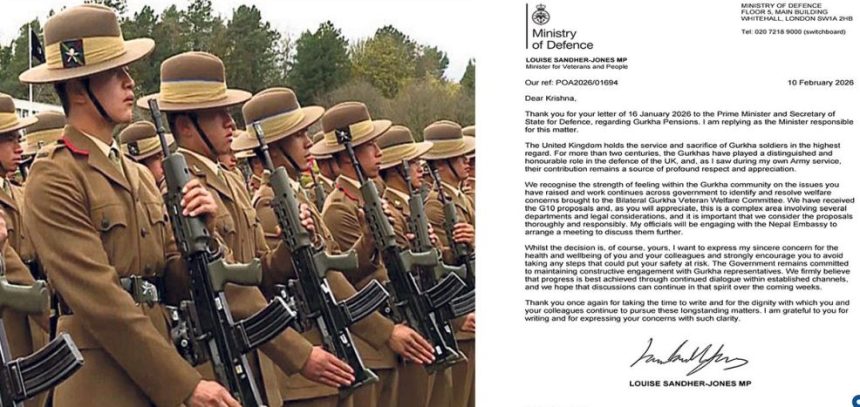 ब्रिटिश गोर्खा संयुक्त संघर्ष समिति यूके–नेपालका तर्फबाट बेलायती प्रधानमन्त्री किअर स्टारमर तथा रक्षा मन्त्रालय अन्तर्गत भेट्रान्स मन्त्री लुइस स्यान्डर–जोन्सलाई पठाइएको एक अल्टिमेटम पत्रको जवाफ दिंदै जोन्सले सो कुरा बताएकी हुन् ।