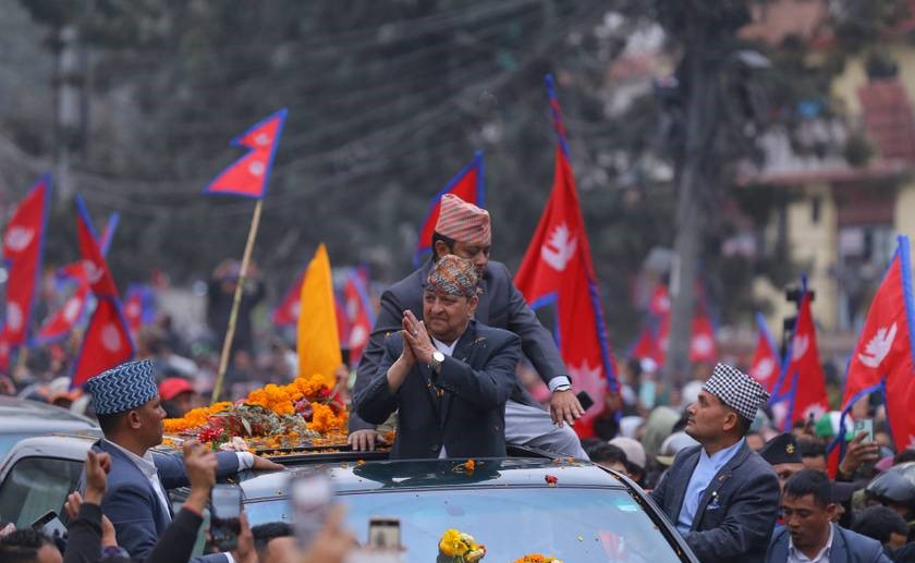 काठमाडौं, ०१ फागुन। पूर्वराजा ज्ञानेन्द्र शाह झापाबाट हेलिकप्टरमा काठमाडौँ आउने भएका छन् । यसअघि उनी बुद्ध एयरको विमानमार्फत काठमाडौँ आउने भनिएको थियो ।