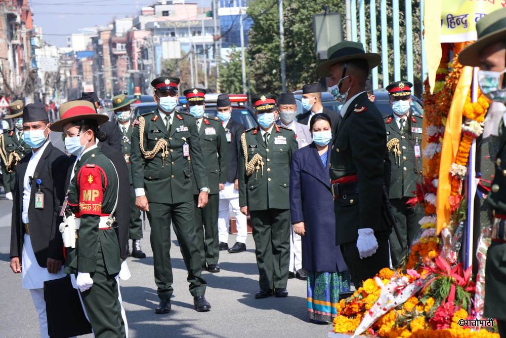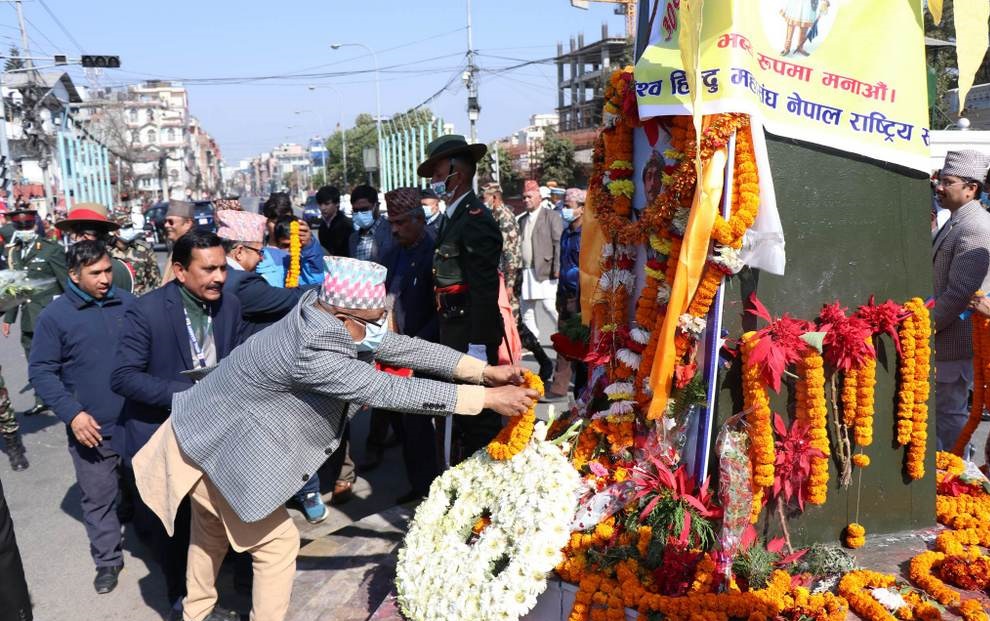 रौतहट,२७ पुस I राष्ट्रपति विद्यादेवी भण्डारीले सिंहदरबार पश्चिम गेटअगाडि रहेको पृथ्वीनारायण शाहको शालिकमा मल्यार्पण गरेकी छन् ।